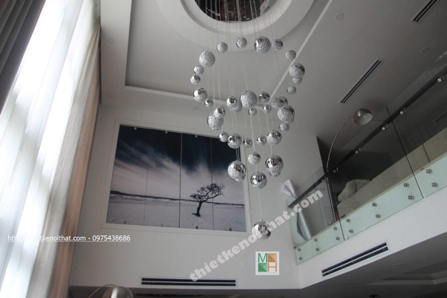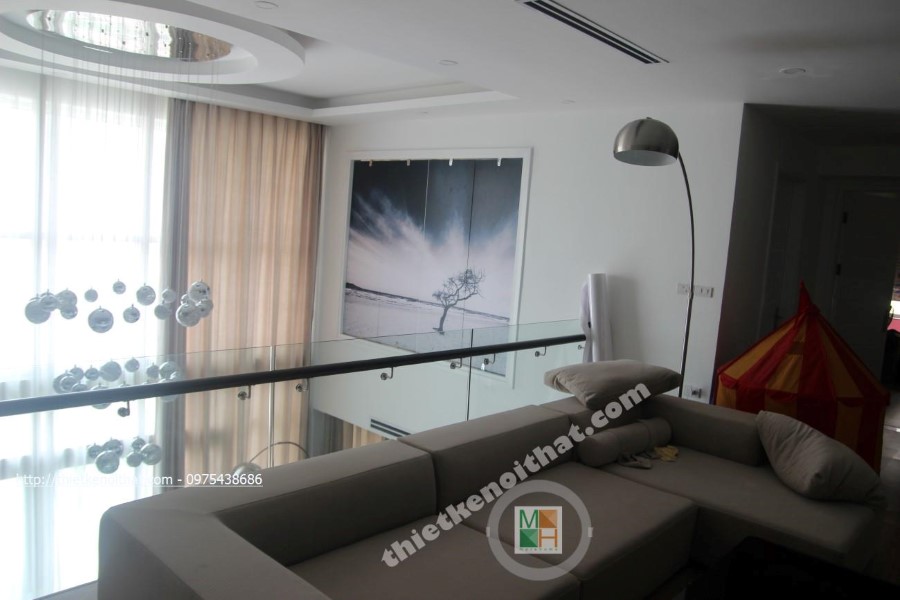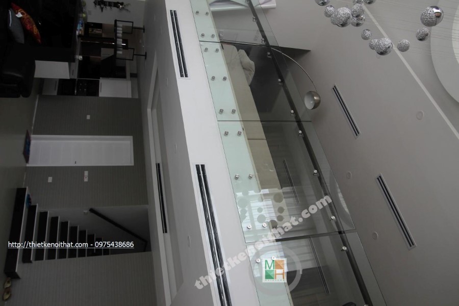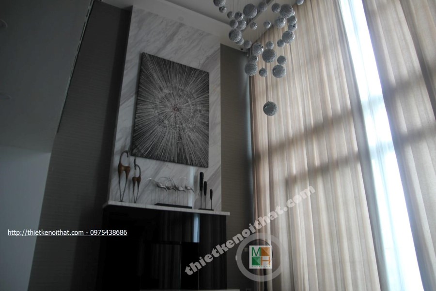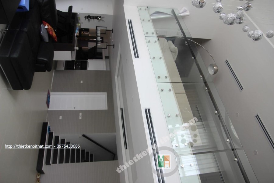 Trong quá trình thi công căn hộ Duplex chung cư Mandarin Garden, kiến trúc sư ưu tiên sử dụng các vật liệu nhẹ như kính cường lực, gỗ và đá tự nhiên vừa đảm bảo tính hiện đại, trẻ trung lại khá linh hoạt khi muốn thay đổi và điều chỉnh.