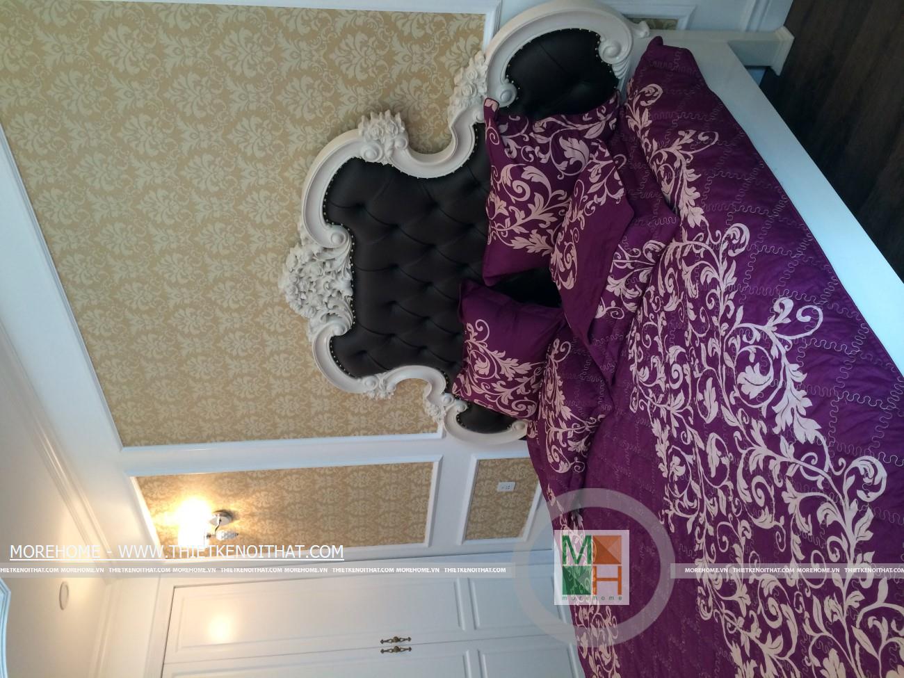 Tiếp theo là thiết kế và thi công nội thất phòng ngủ. Đây là một trong những không gian đóng vai trò quan trọng nhất trong căn hộ Mandarin Garden, với không gian phòng ngủ, sự thoải mái, dễ chịu và thư ấm áp luôn là các yếu tố mà bất kỳ gia chủ nào cũng mong đợi. Để làm được điều đó, kiến trúc sư cần vô cùng trau chuốt và tỉ mỉ. Đối với các thiết kế tân cổ điển phòng ngủ, các tone màu được sử dụng khá linh hoạt mang đến sự tươi mới và sống động cho căn phòng. Tone màu tím, hồng hay các tone trầm ấm giúp không gian phòng trở nên gần gũi và vô cùng cuốn hút.