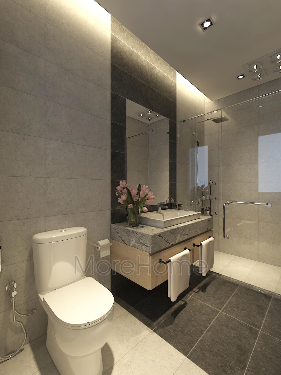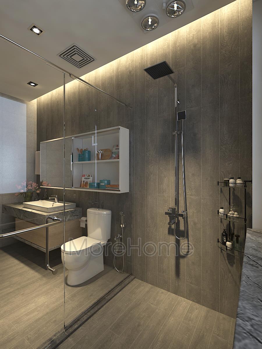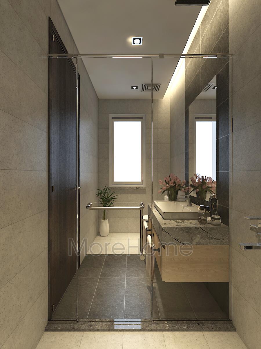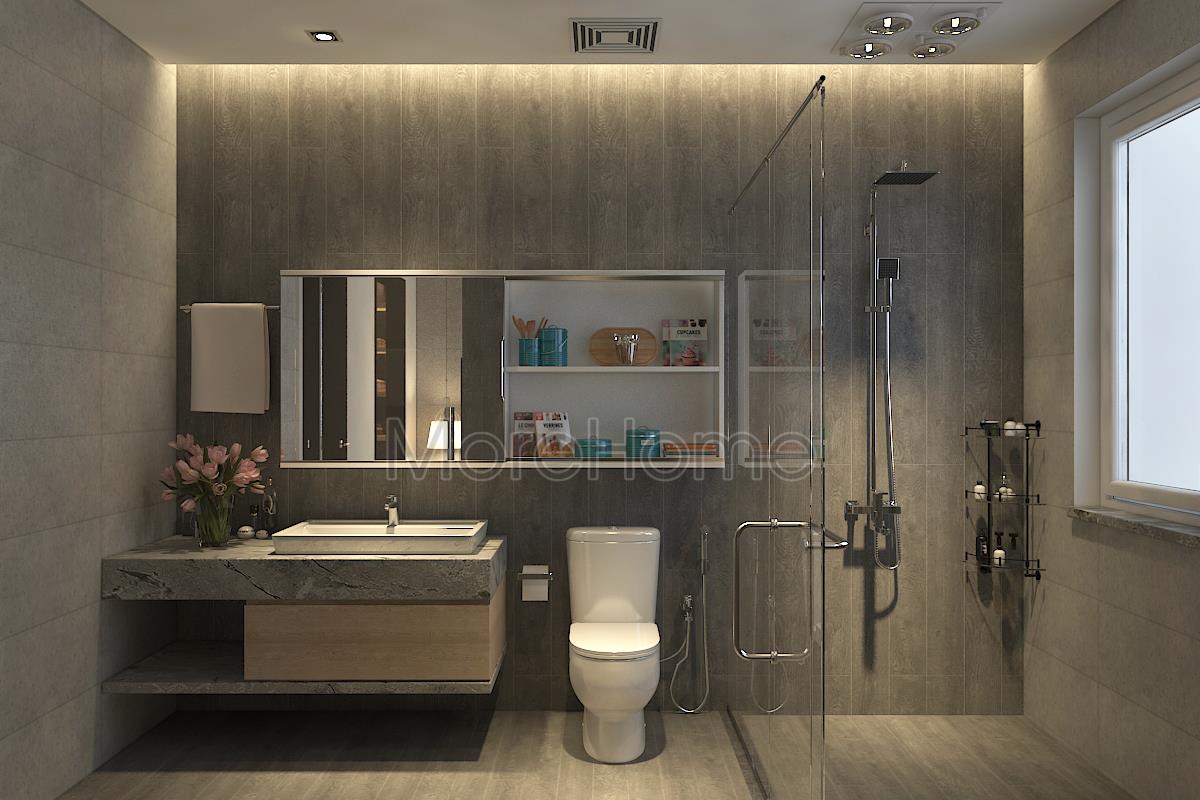 Khác với phòng Master thì phòng ngủ bé được tách rời với phòng tắm. Phòng tắm được thiết kế với vách ngăn kính tiện nghi, hiện đại.