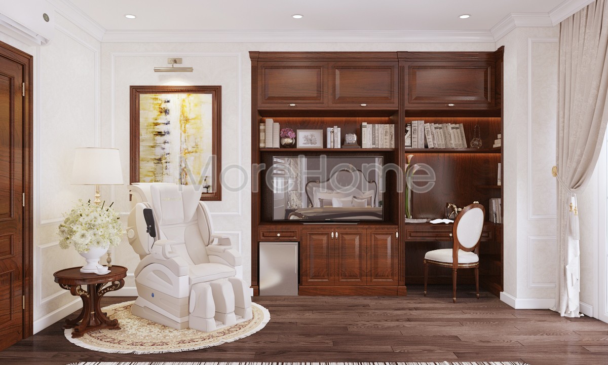 Phong cách cổ điển luôn mang đến một nét đẳng cấp riêng cho không gian nhà. Thiết kế biệt thự tân cổ điển này đã thể hiện được hết những ưu điểm mà phong cách cổ điển có được. Đến với mẫu thiết kế nội thất biệt thự cao cấp Phổ Quang bạn sẽ được chiêm ngưỡng những chi tiết đường nét mềm mại trong nội thất tân cổ điển àm KTS Morehome mang lại.