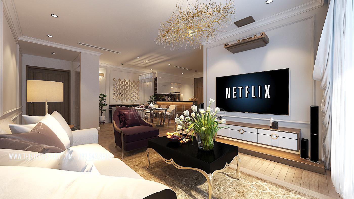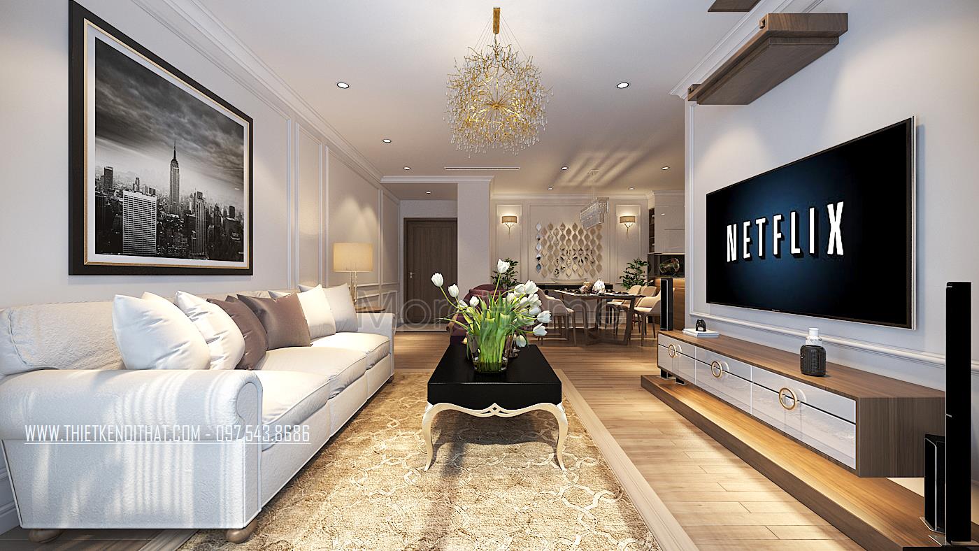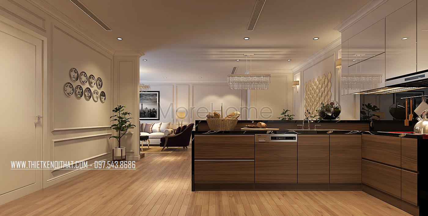 Trước mắt bạn là mẫu thiết kế nội thất căn hộ chung cư Vinhomes Gardenia được thiết kế với phong cách tân cổ điển sang trọng. Đây là phong cách được khá nhiều khách hàng lựa chọn cho nhà chung cư. Tại căn hộ Vinhomes Gardenia này KTS Morehome đã sử dụng tông màu kem sữa chủ đạo, rất sáng sủa và nhã nhặn. Căn hộ được thiết kế nội thất bao gồm phòng khách bếp liên thông và 3 phòng ngủ rất phù hợp với gia đình đông con.