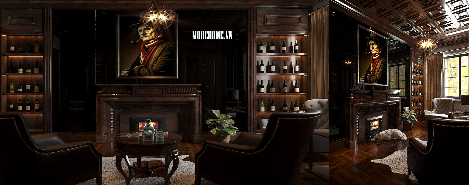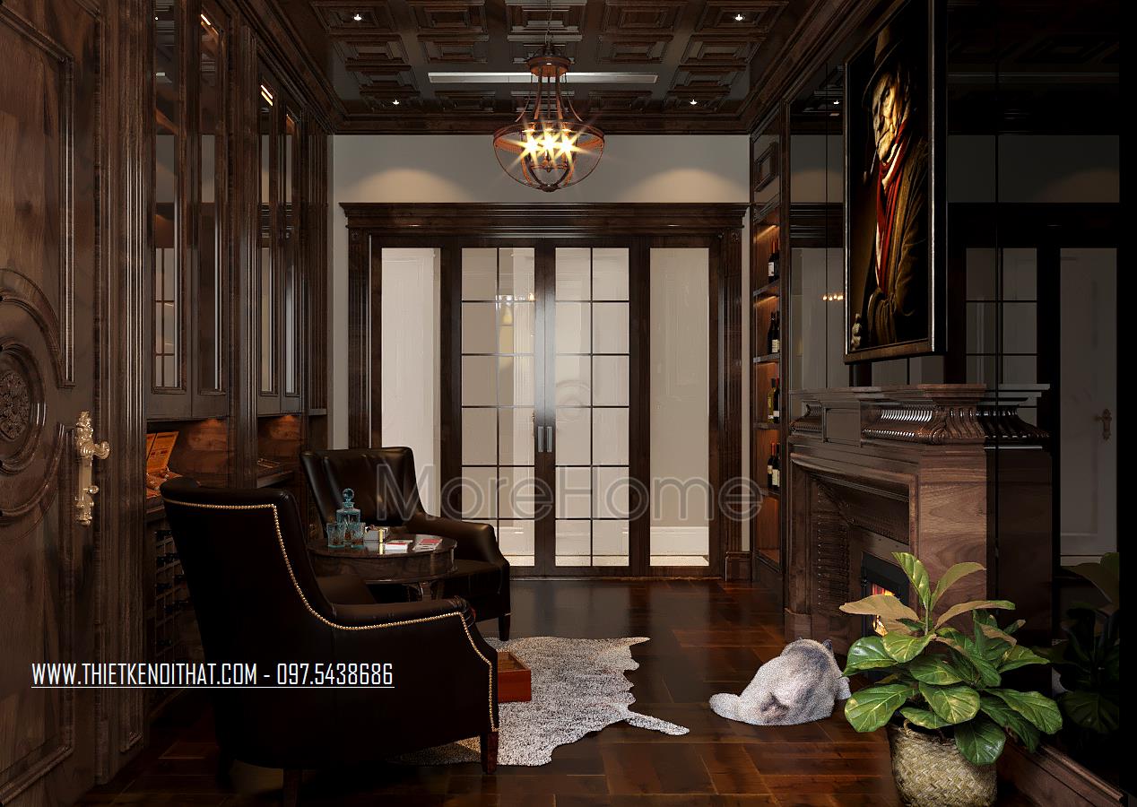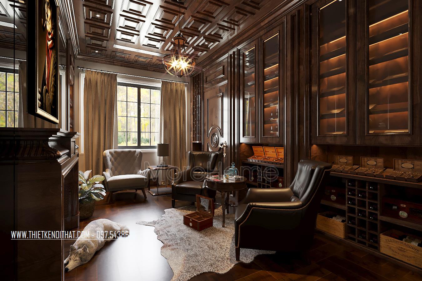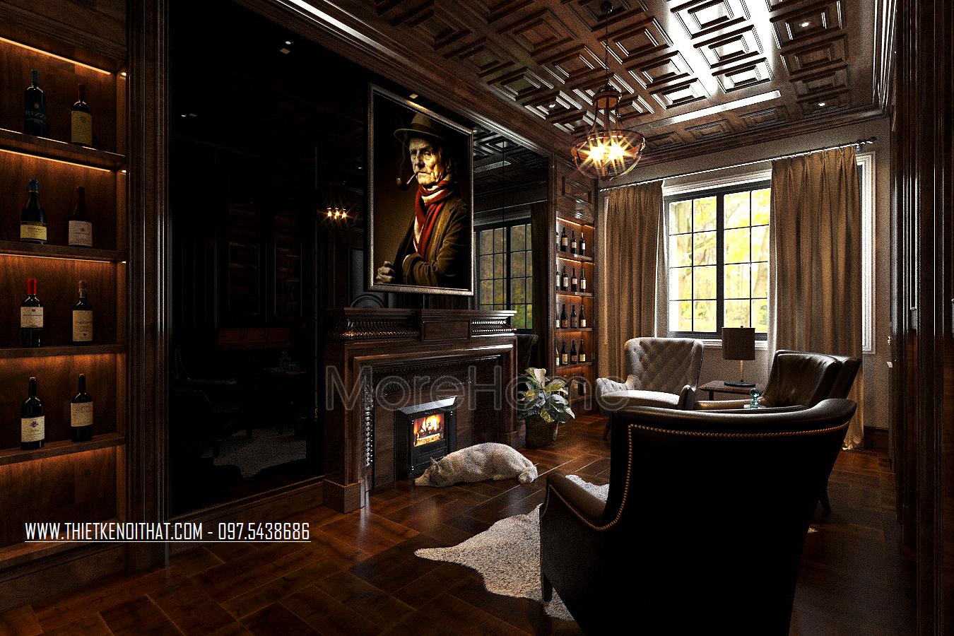 Đẳng cấp hơn nữa KTS đã đáp ứng được sở thích của gia chủ với phòng rượu cao cấp. Phòng rượu được thiết kế với gam màu khá trầm ấm với chất liệu gỗ tự nhiên.