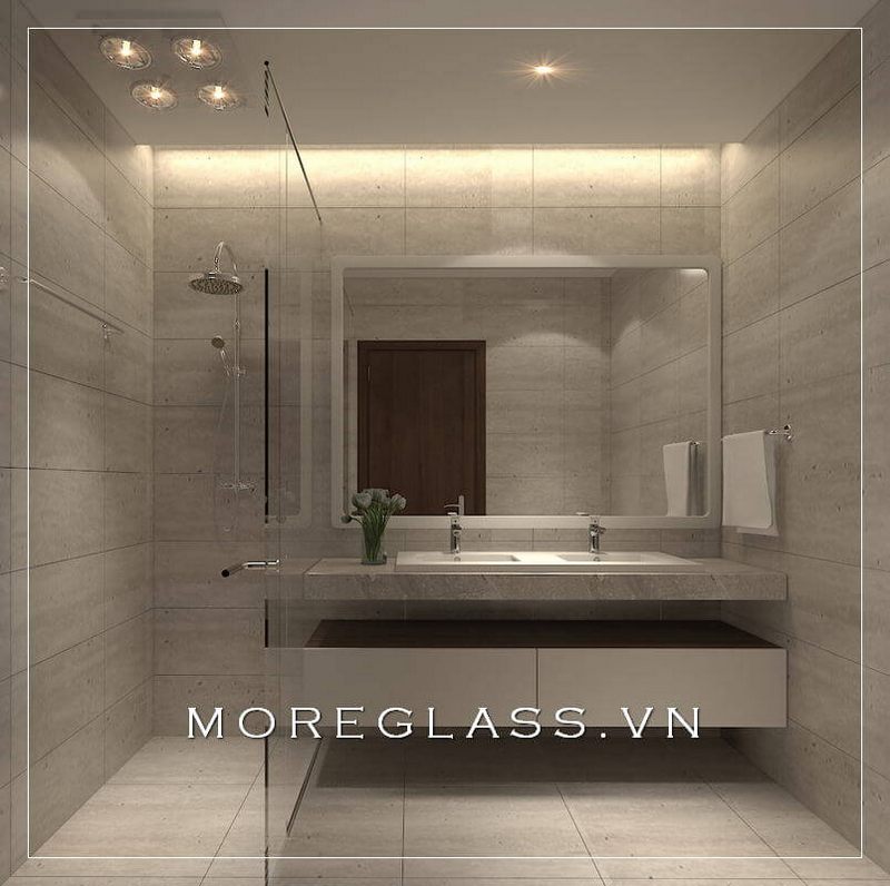 Mẫu thiết kế nhà tắm kính đẹp có vẻ đẹp tinh tế, sang trọng nhưng không làm cho phòng tắm nhỏ trở nên bí bách.