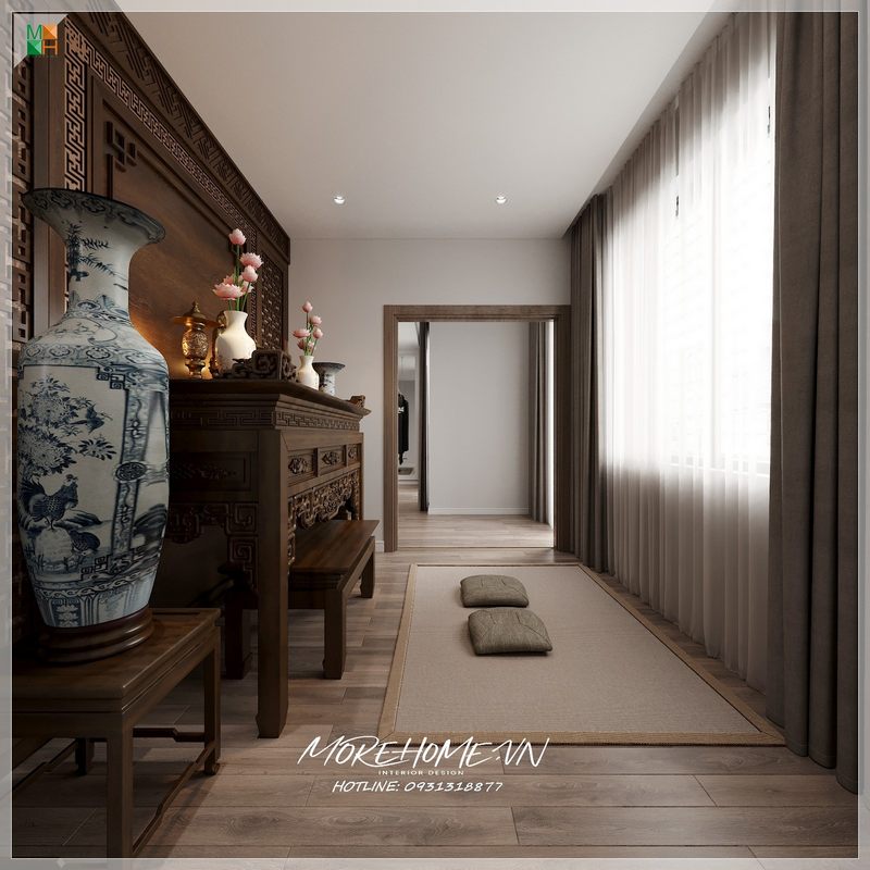 Cách bố trí cửa sổ lớn giúp phòng thờ trang trí đẹp và luôn luôn được thông thoáng mà không vi phạm phong thủy.